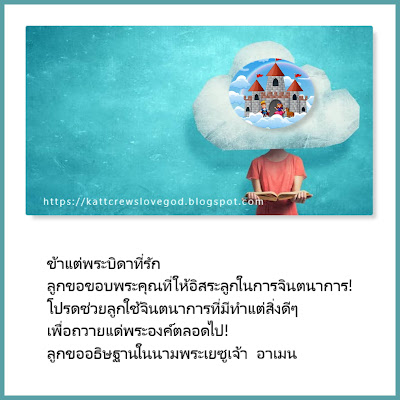 คนเรามักจะจินตนาการไปเรื่อย จากเรื่องนี้ ไปเรื่องนั้นอยู่บ่อยๆ มันไม่ผิดเลยที่เราจะมีจินตนาการแต่ต้องเป็นไปในทางสร้างสรรค์ด้วย พระเจ้าทรงเป็นที่หนึ่งในผู้สร้างสรรค์ !